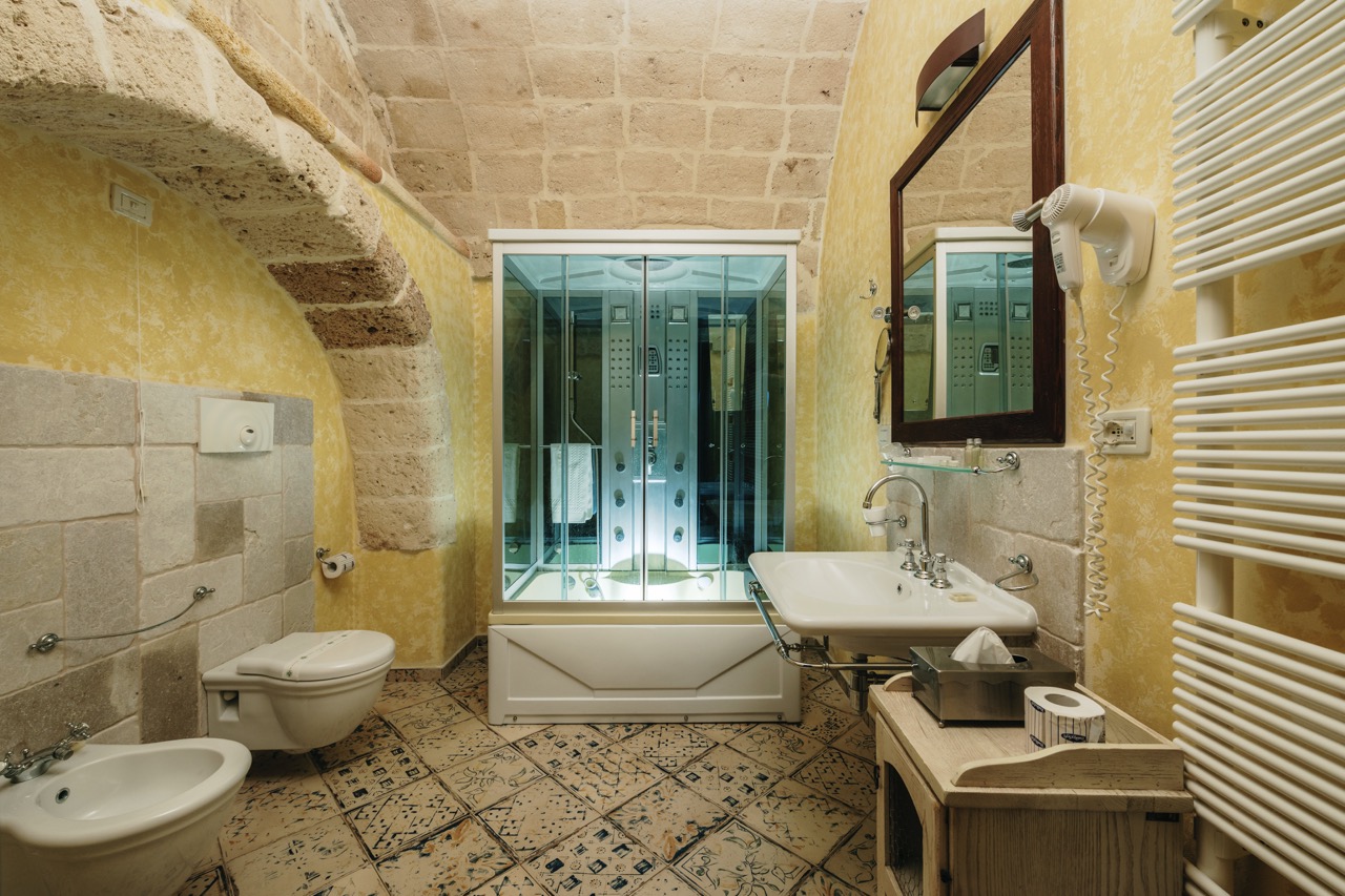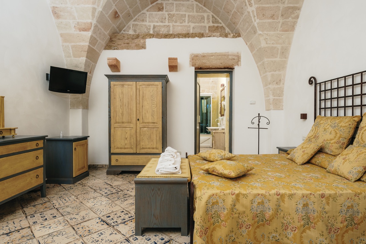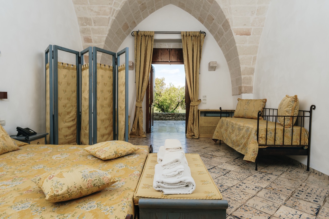 Le Junior Suite di Masseria Strazzati offrono ambienti particolarmente generosi, con spazi che permettono di muoversi in libertà e vivere la masseria in modo ancora più rilassato. Ogni suite ha una propria identità, con arredi che richiamano la tradizione pugliese, pavimenti decorati e soffitti a volta che valorizzano la luce naturale. Ideali per famiglie o gruppi che desiderano comfort e autenticità, rappresentano una soluzione perfetta per chi cerca un soggiorno silenzioso e rigenerante.