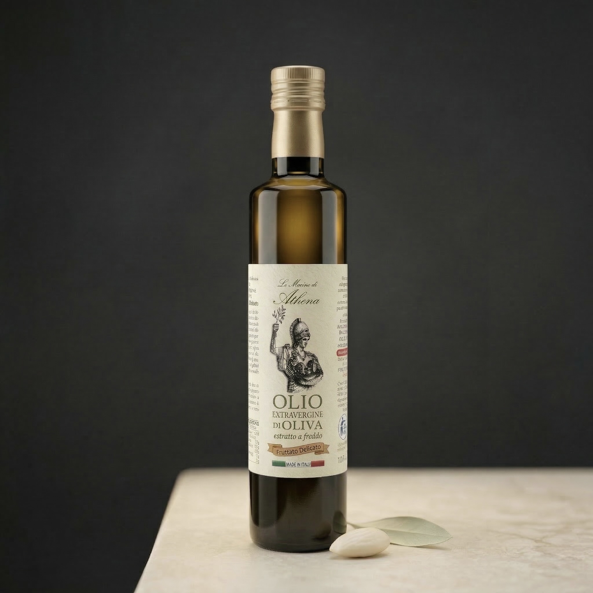La bottiglia protegge l’olio e ne valorizza la presentazione, rendendolo adatto anche a una tavola curata o come idea regalo.